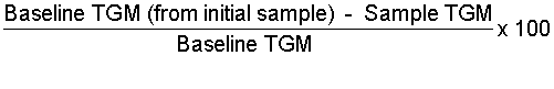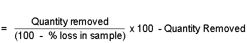 Under certain circumstances it may not be possible to obtain a baseline sample and so the following method may be used to determine a weight loss. The method may be used as a cross check on the thousand grain mass method of calculating % weight loss.