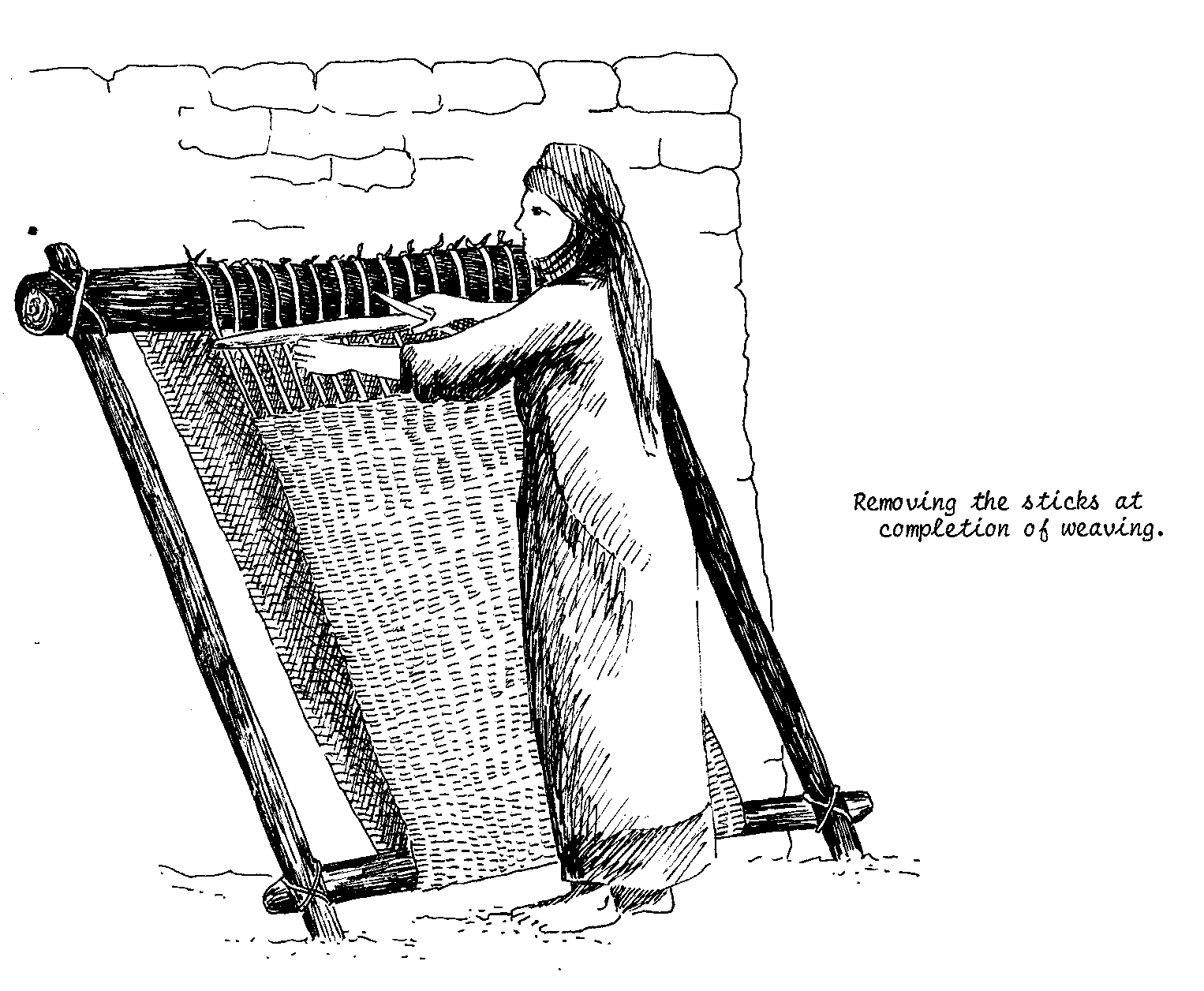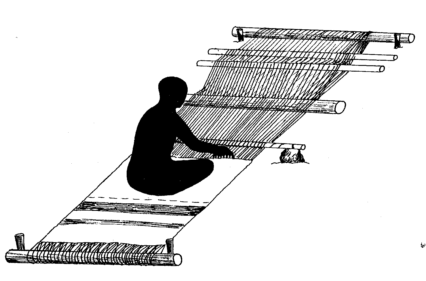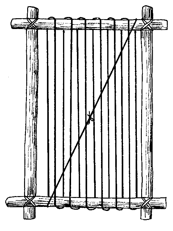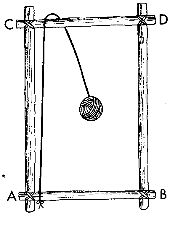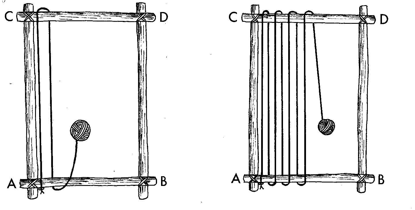 construction of a very simple loom, built into the ground,