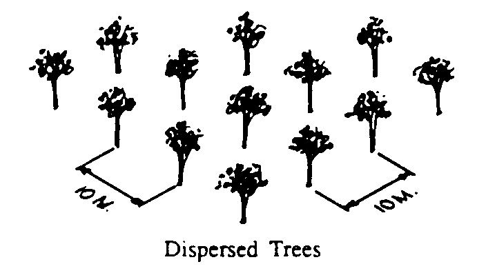 aunque los árboles pueden aparecer ser dispersados al azar en los Árboles de landscape. y arbustos,