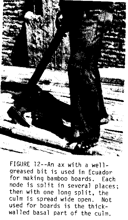 Pueden usarse varios dispositivos para el culms que raja. Cuando bambú es hendido los bordes de