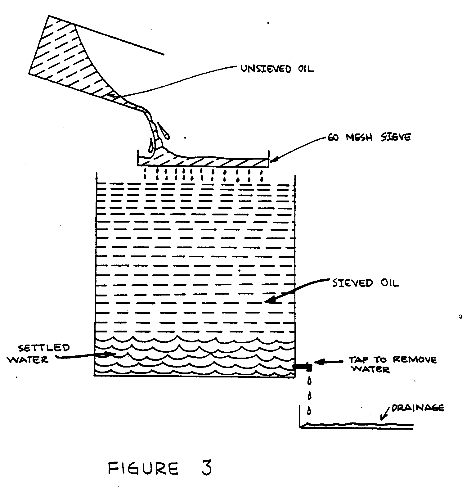 El aceite se vierte primero a través de una pantalla (60 malla o más fino) en un tambor limpio que