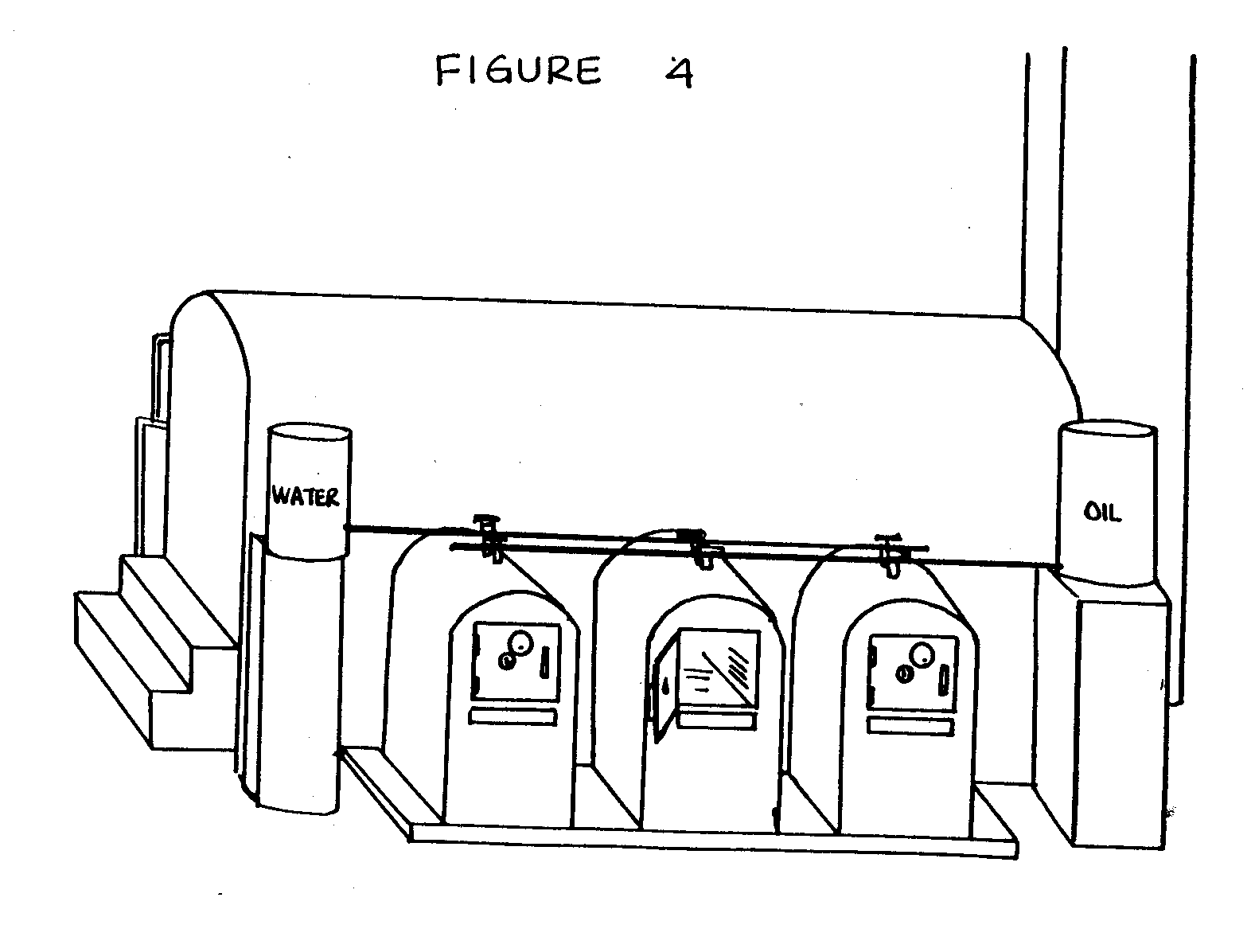 Tubos que llevan de los tanques tienen el valves de la verja localizado sobre cada uno del fireboxes.