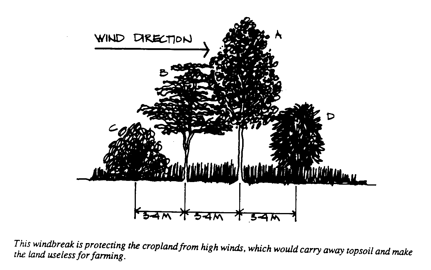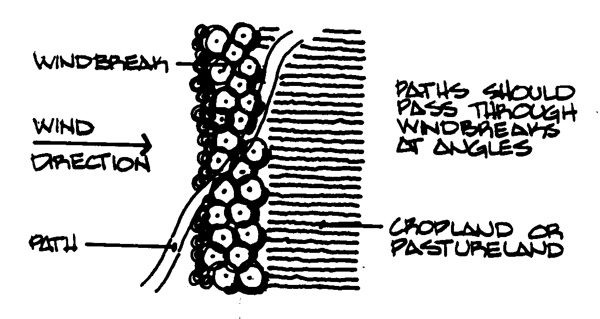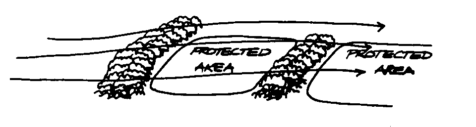 Las protección contra el viento son tiras de árboles y otra vegetación que lento el flujo del viento, reduciendo la erosión eólica,