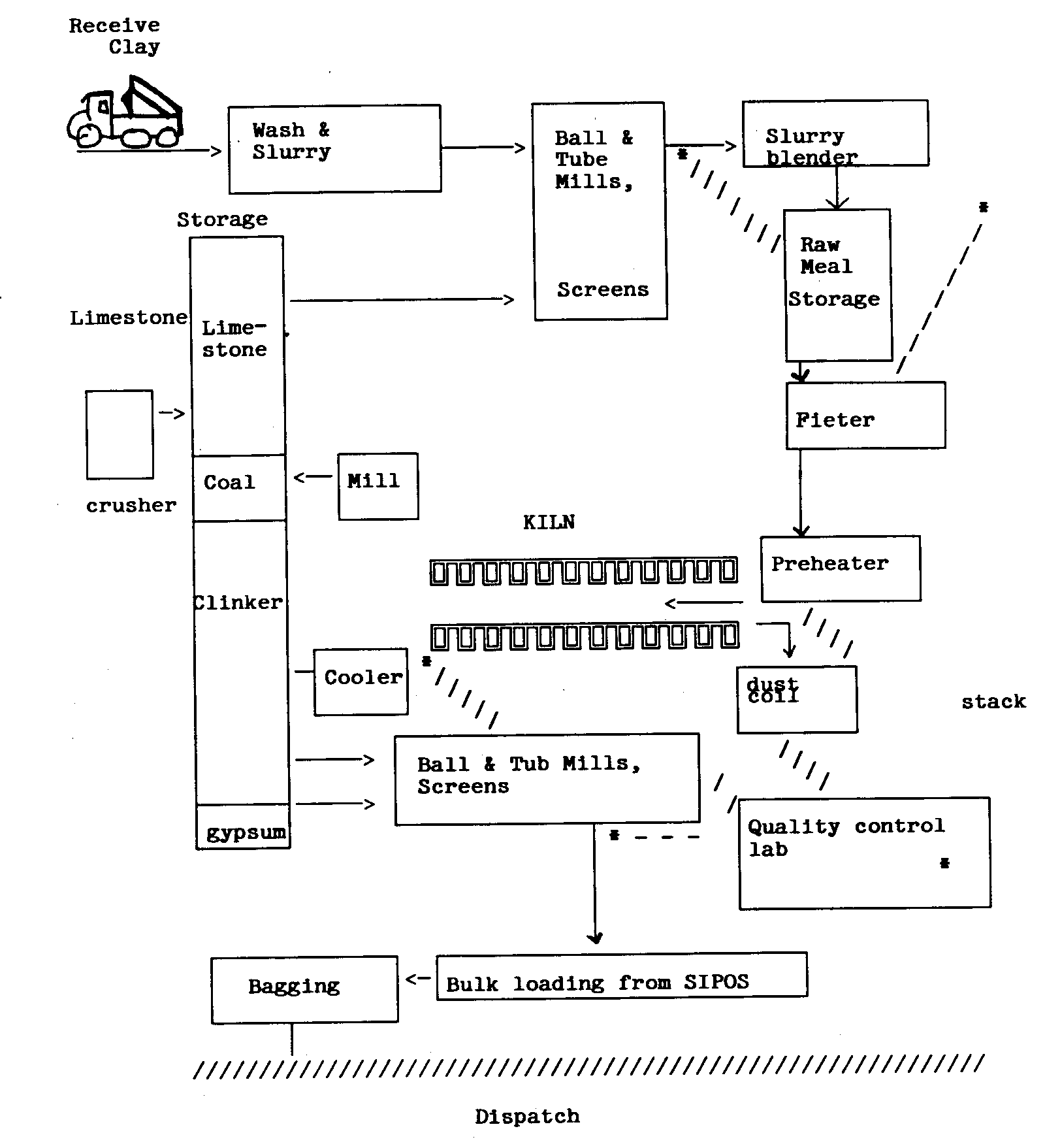 O Product. para fazer Portland cimentar, uma mistura esmagada de pedra calcária,