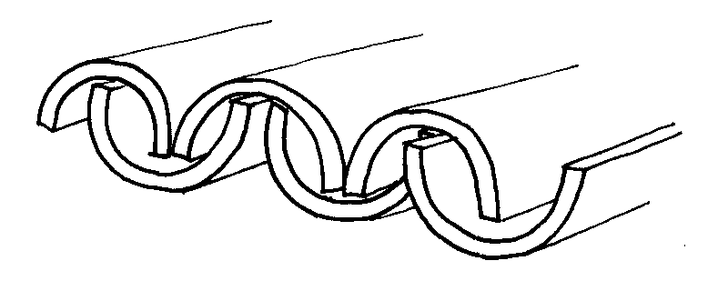 * para fazer um telhado, comprimentos de bambu fendidos em meio, fatia