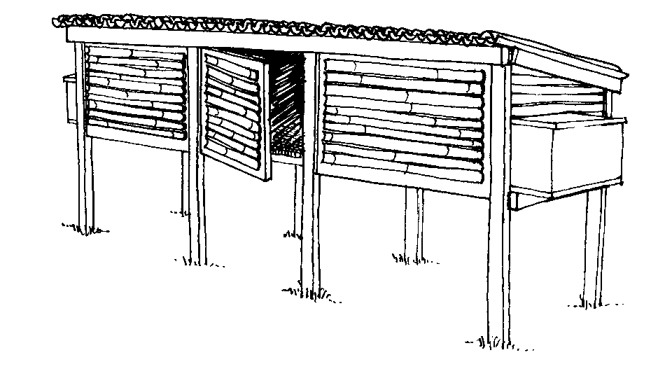 de bambu se deitou ao longo do comprimento do hutch em cima do
