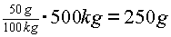 50g / 100 kg × 2000 kg = 1000 g = 1 kg