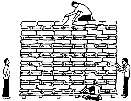 grilles de protection, et enfin les piles de sacs, à l'aide d'un