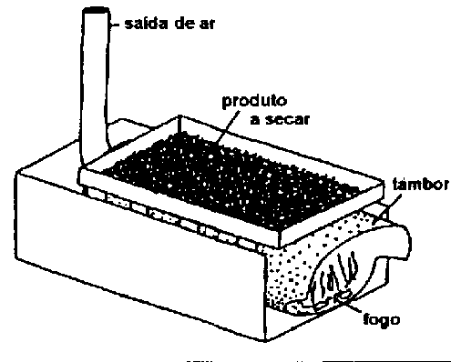 Secadores de mato são construções simples em forma de túnel, compostas de argila ou de recipientes de metal pelas quais circula o ar quente com a ajuda de um fogo aberto. O produto, repartido sobre uma plataforma posicionada en cima do túnel, é secado pela radiação do calor. Uma secagem apropriada só pode ocorrer se o produto é repartido em camadas não mais espessas que 2 3 cm. Ao não haver geralmente nenhuma possibilidade de regular o calor, podem ocorrer facilmente sobreaquecimento e danos ao produto.