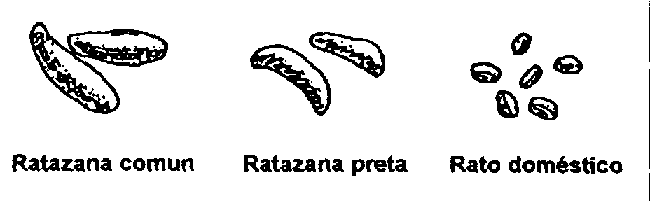 | Rattus rattus | Dorso preto ou cinzento, parte ventral mais clara; pelagem macia. Cauda comprida e fina, com poucos pêlos. Olhos grandes ; orelhas finas, translúcidas e sem pêlos; focinho bicudo, 5 pares de tetas. |