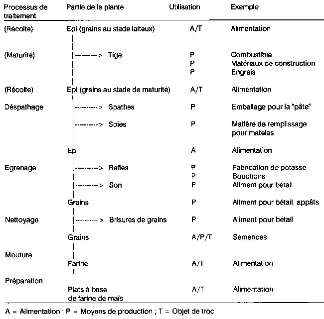 Le maïs occupe au sein de l'exploitation agricole une place prépondérante. Il est le principal aliment de base de la famille, en même temps qu'une importante source de revenus pour de nombreuses exploitations. Sa signification toute particulière est encore soulignée par le fait qu'il est au centre de bon nombre d'activités quotidiennes. Travaux des champs, préparation des repas, activités liées à la vente, fêtes religieuses, cérémonies, ne sont que quelques exemples parmi d'autres du rôle central joué par le maïs.