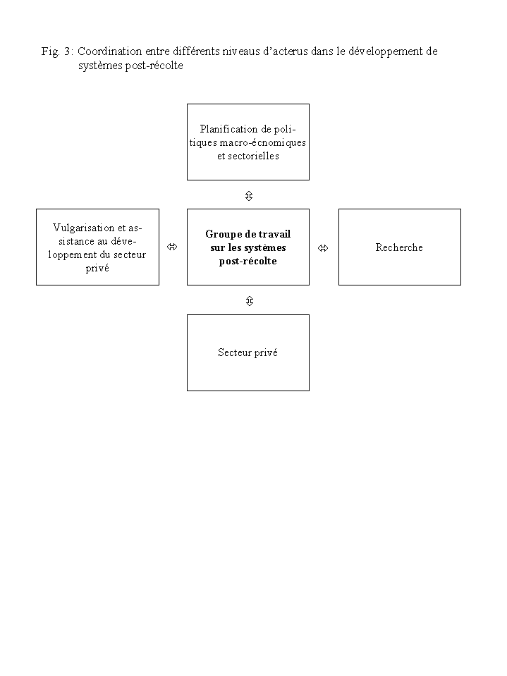 | Fig. 3 | Coordination entre différents niveaus d'acteurs dans les développement de systèmes post-récolte. |
