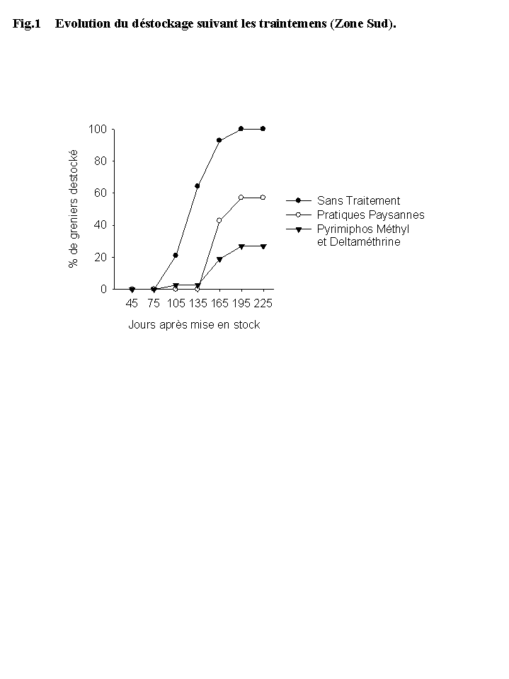 | Fig. 1 | Evolution du déstockage suivant les traitements (Zone Sud). |