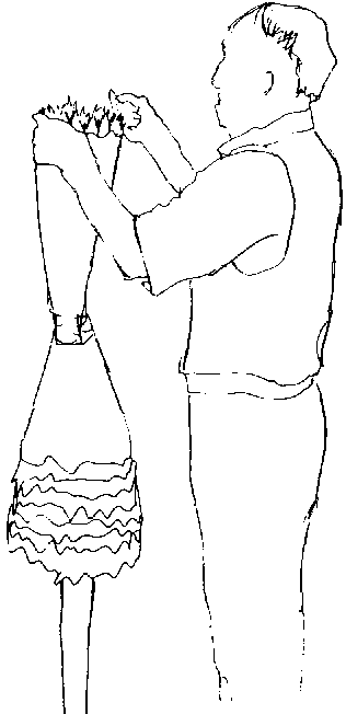 Des pochettes de papier ou de plastique mince sont des matériaux d'emballage utiles pour protéger les fleurs coupées des blessures de manutention et de transport. Dans l'illustration ci-dessous, un manutentionnaire glisse une pochette sur un bouquet de fleurs avant de placer celui-ci dans une boîte de carton dur ventilé. Les pochettes protègent les fleurs et servent aussi à séparer les bouquets à l'intérieur de la boîte.
