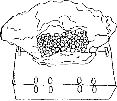 S'il faut employer de grands sacs ou paniers pour l'emballage en vrac de fruits ou de légumes, on peut se servir d'un simple conduite tubulaire pour réduire l'accumulation de chaleur causée par la respiration du produit. Dans l'illustration ci-dessous, on a utilisé un tube de bambou tressé environ un mètre de long pour ventiler un grand sac de piments.