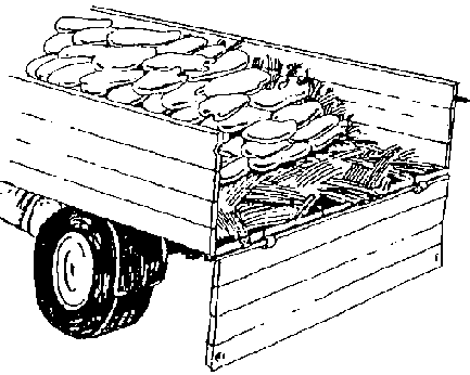 Pour réduire la conduction de chaleur de l'extérieur du véhicule dans le chargement de produits fermiers, il faut disposer les piles de manière à réduire le contact entre le produit et le plancher et les parois du véhicule.