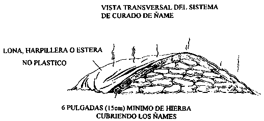 Fuente: Wilson, J. Sin fecha. Careful Storage of Yams: Some Basic Principles to Reduce Losses. London: Commonwealth Secretariat/International Institute of Tropical Agriculture (IITA Ibadan, Nigeria.)
