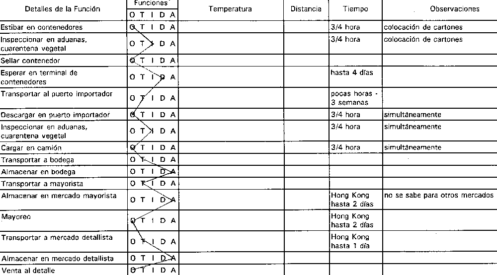 * 0 = operación; T = transporte; I = inspección; D = demora; A = almacenamiento