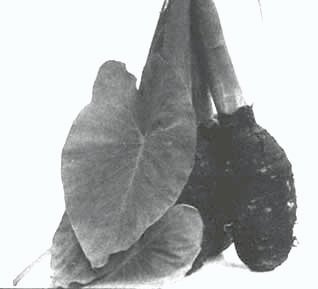 Colocasia, nom scientifique du "vrai" taro, est l'un des tubercules les plus répandus dans les régions tropicales humides. Il peut atteindre environ un mètre de hauteur et produire des tubercules comestibles d'une trentaine de centimètres de long. Les feuilles et les tiges de cette plante entrent également dans la composition de beaucoup de plats insulaires.