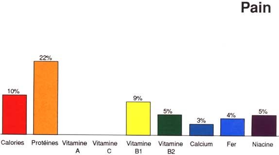 Les familles qui ont la possibilité d'avoir leur propre potager peuvent consommer des aliments locaux et réaliser des économies. On s'aperçoit, à la lecture des histogrammes, que l'igname a une meilleure valeur nutritive que les aliments comme le pain blanc, car elle contient beaucoup de calories et quelques protéines ainsi que plusieurs sels minéraux et vitamines. Le pain blanc fournit la même quantité de calories, mais très peu de minéraux et de vitamines. On peut consommer l'igname avec d'autres aliments tels que la viande, le poisson, les fruits de mer, les légumes et les feuilles vertes. Le pain blanc accompagnant généralement des aliments très énergétiques, tels que le beurre, la margarine, la confiture, etc., il apporte beaucoup plus de calories que l'igname. Ceci peut entraîner un excès pondéral et l'obésité.