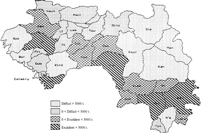 Fig n° 2: Zones excédentaires et déficitaires en riz local (source PASAL)