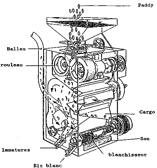 - d'organiser la collecte du paddy sur un vaste rayon (correspondant à la production de plusieurs milliers d'hectares pour des rendements compris entre 1 et 1,5 T/ha),- de disposer de structures de stockage importantes pour conserver la matière première correspondant à une activité annuelle.