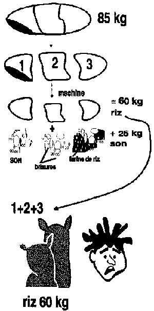 Vous savez que la transformation (ou usinage) du paddy s'effectue en DEUX ETAPES voir, schéma du "ballon":