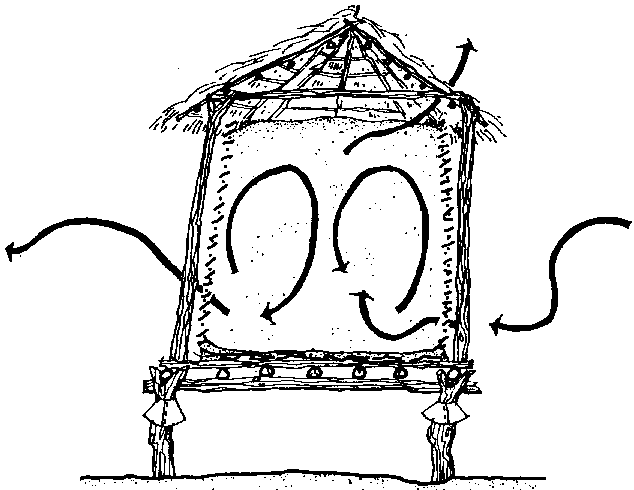 L'un de ces séchoirs est le silo-séchoir à ventilation naturelle. L'exemple le plus courant de ce groupe est le crib, qui sera décrit en détail dans la section 10.