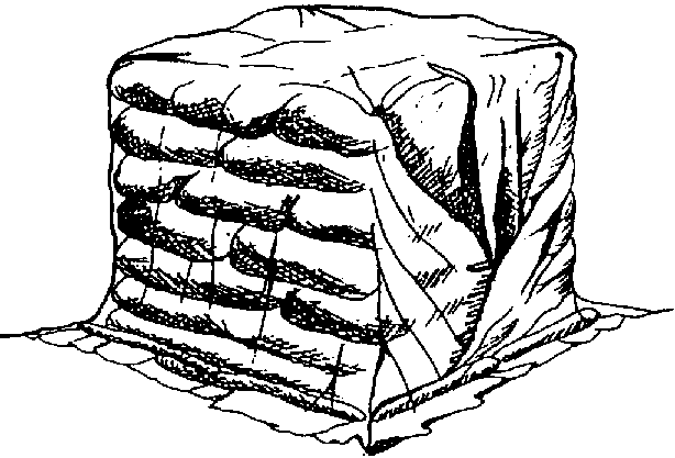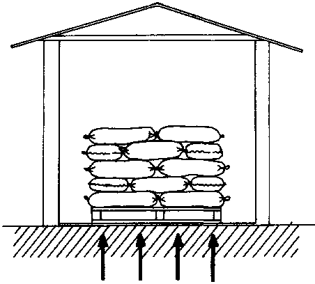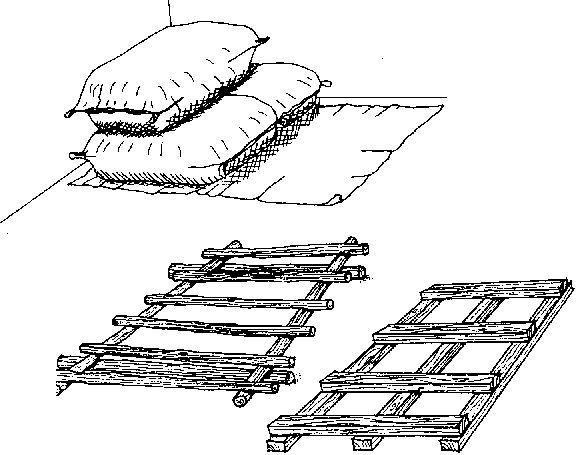 Le fardage le moins coûteux est celui gui se compose simplement d'une natte imperméable épaisse ou d'une feuille de plastique non perforée, sur lesquelles on pose ensuite les sacs.
