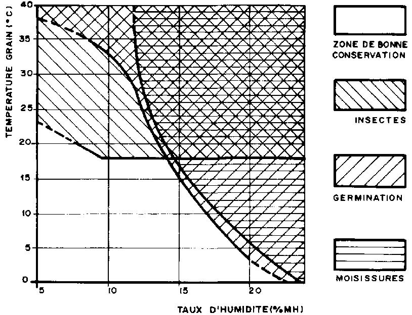 Il est facile d'observer que plus la température est élevée, plus la teneur en eau des grains doit être faible pour que soit assurée une bonne conservation des produits.