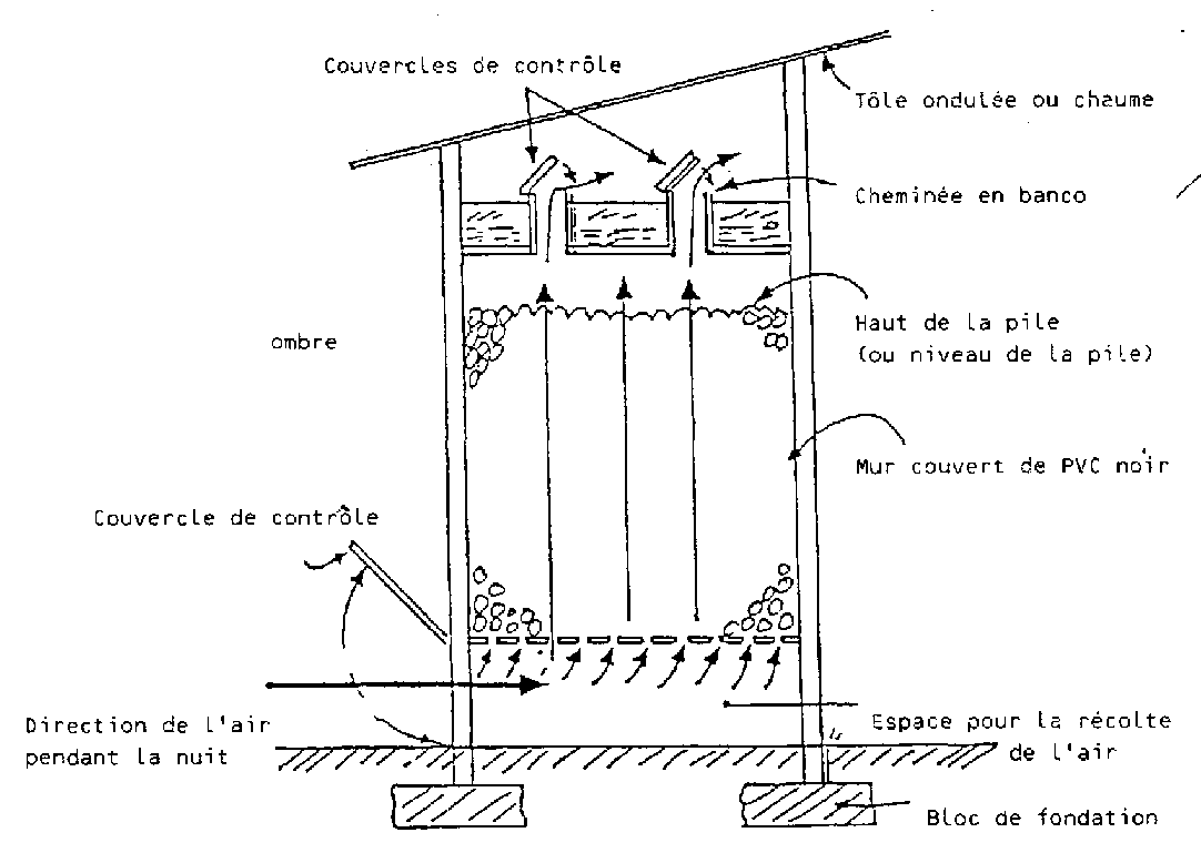 Le projet FAO/PNUD du Cameroun, intitulé "Développement des systèmes Aprèsrécolte., a conçu et diffusé une petite structure en banco pour le stockage d'environ 1 tonne de pommes de terre (figure 2.4).