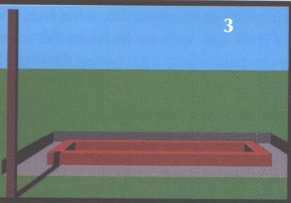 A l'aide de quatre piquets de I mètre de long on délimitera un rectangle droit de 3,5 mètres de long par 1,5 mètre de large. On s'assurera que l'une des longueurs soit orientée vers le sud en suivant les recommandations du chapitre sur l'orientation du séchoir. Une corde sera tendue et mise à niveau entre chaque piquet. En travaillant à l'intérieur du rectangle on creusera un trou d'au moins 20cm de profond. La base du trou devra être de niveau dans tous les axes. (dessin 2)