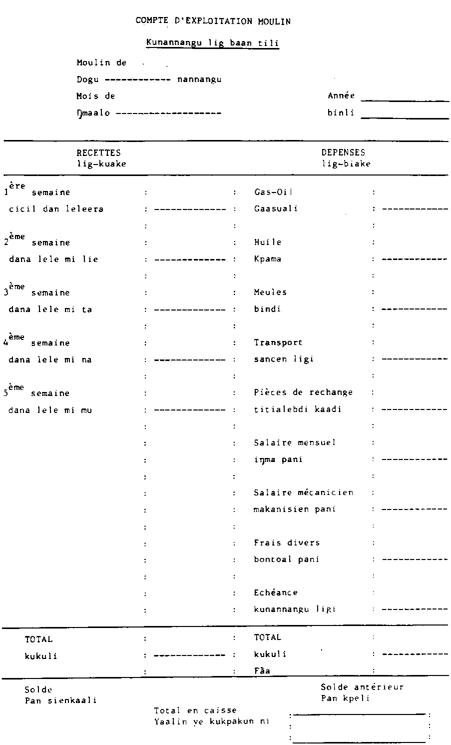 Ces fiches (trimestrielles et annuelles) seraient remplies par l'encadrement à partir des comptes d'exploitation des moulins et transmises au responsable du suivi du programme/projet.