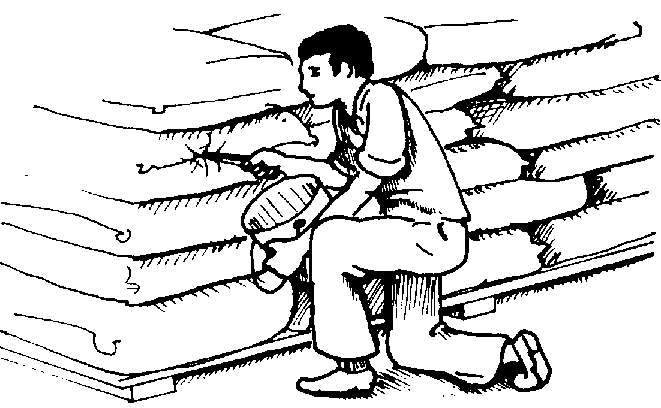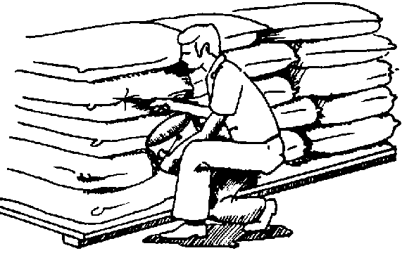 En los graneros horizontales o bodegas es conveniente aumentar el número de puntos de muestreo, cuidando que estén bien distribuidos en la superficie de los granos. Tanto en silos como en bodegas, las muestras se deben tomar a cada metro de profundidad con la sonda manual o neumática (figura 29). Después de recolectar las muestras de cada lugar de muestreo es necesario homogeneizarlas y dividirlas.