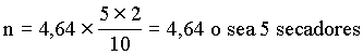 El número total de secadores se puede determinar a través de la siguiente fórmula: