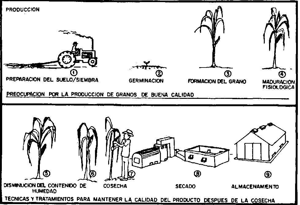 Figura 1. Etapas entre la producción de granos y el almacenamiento.