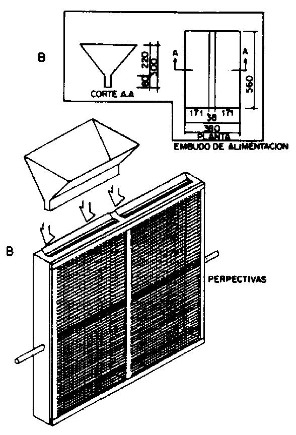 Dimensiones. La dimensión básica de la caja del secador solar rotativo es de 1,20 metros de ancho por 1,20 m de alto y 0,15 m de espesor. En un secador de este tamaño caben aproximadamente 200 litros de granos (100 kg - 150 kg de maíz desgranado). La cantidad de secadores rotativos que son necesarios para una propiedad agrícola se calcula de acuerdo con la producción media, el tiempo medio de secado y el número de días que se requieren para la cosecha (figura 6).