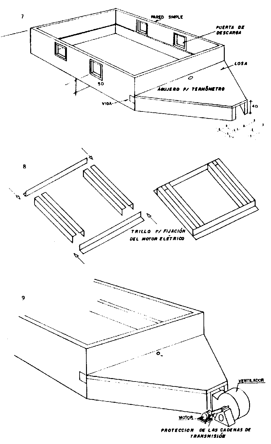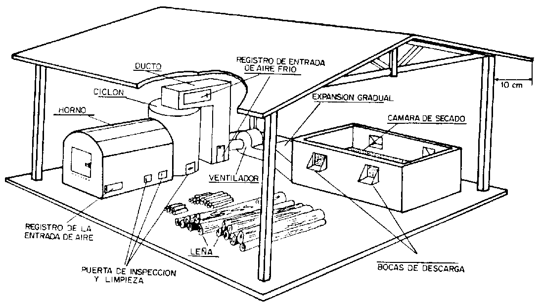 son: i) la cámara de secado, ii) un piso de lámina o chapa