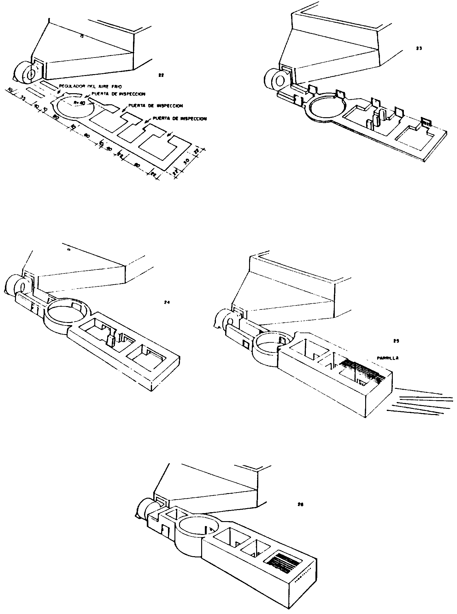 con expansión gradual, iv) un ventilador para mover el aire y v)