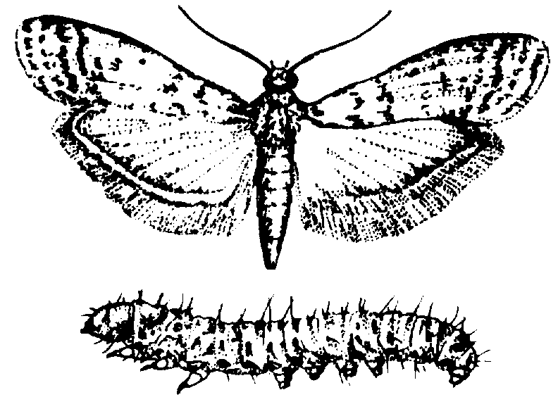 Ataca los cereales, sobre todo al trigo, maíz y arroz. Es una pequeña mariposa de color gris oscuro, con un tercio de base clara, blanco grisáceo. Cada hembra pone un promedio de 170 huevos, a los tres o cuatro días de nacer. Los adultos viven alrededor de 10 días. El período para su desarrollo es de unos 30 días en condiciones favorables. Durante el día tiende a evitar la luz, permaneciendo quieta, y es de noche cuando presenta mayor capacidad de vuelo (figura 12).