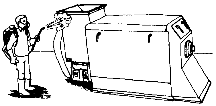 Se deben tomar medidas para que el almacén se conserve siempre limpio, no solamente las paredes y pisos, sino también todos los equipos que allí estén. En el período entre cosechas, la parte interna del almacén y los equipos deben ser desinfectados con insecticidas de buena capacidad residual. Tales medidas contribuirán a que el nuevo lote de granos no se infeste durante su almacenaje (figura 18).