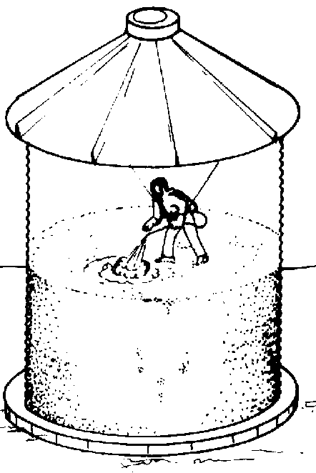 Tapar con papel kraft bituminoso, cinta adhesiva o plástico todas las aberturas más comunes del silo, tales como: ventanas de inspección (lateral y superior), ventiladores de aireación, puntos de carga y descarga, respiradores, etc. (figura 40). A continuación se especifican las etapas a seguir: