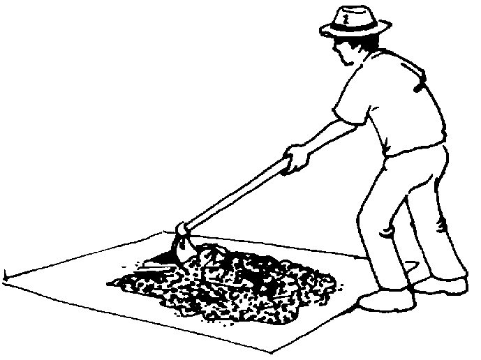 Tierra de hormiguero majada: Dosificación: 3,0 kg de tierra + 2,5 litros de agua por un saco de frijol. Para hacer este tratamiento se recomienda colar la tierra en un cedazo de malla de 3 mm y después poner el agua hasta que la mezcla adquiera la consistencia deseada. Sólo entonces se mezcla con el frijol (figura 51).