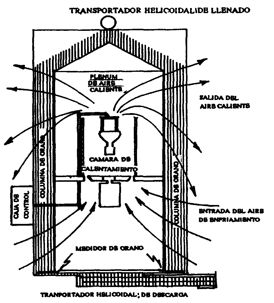 También el mecanismo descargador de la máquina puede estar diseñado de tal manera que la remoción del grano sea más rápida en la pared de la columna donde ingresa el aire caliente que en la otra.