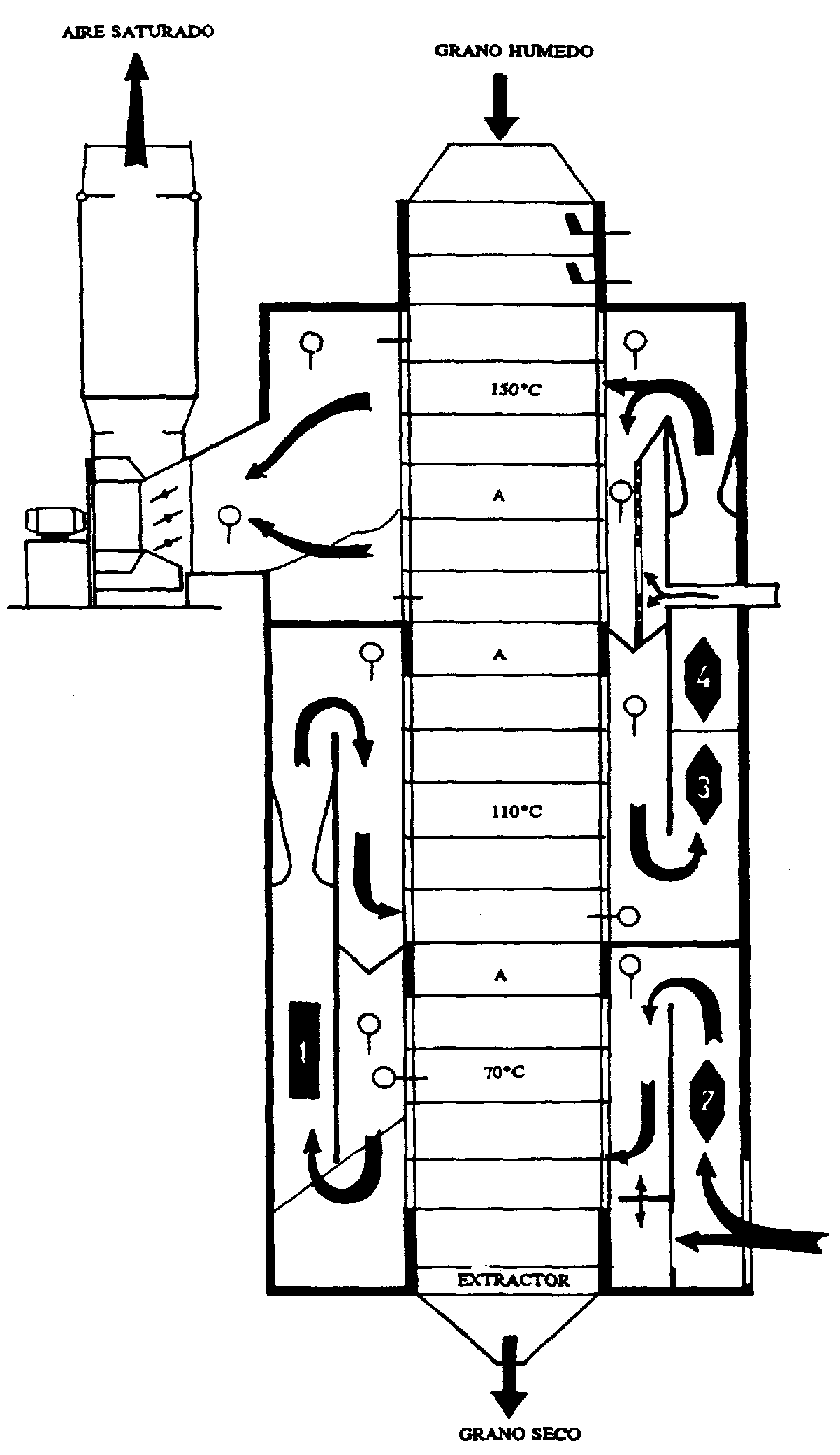 Sin embargo, otro autor, como Lasseran (1993) dice que no se observaron ventajas en la calidad del grano al aumentar las zonas de reposo y que, por el contrario, se redujo la capacidad de secado al disminuir la zona de secado.
