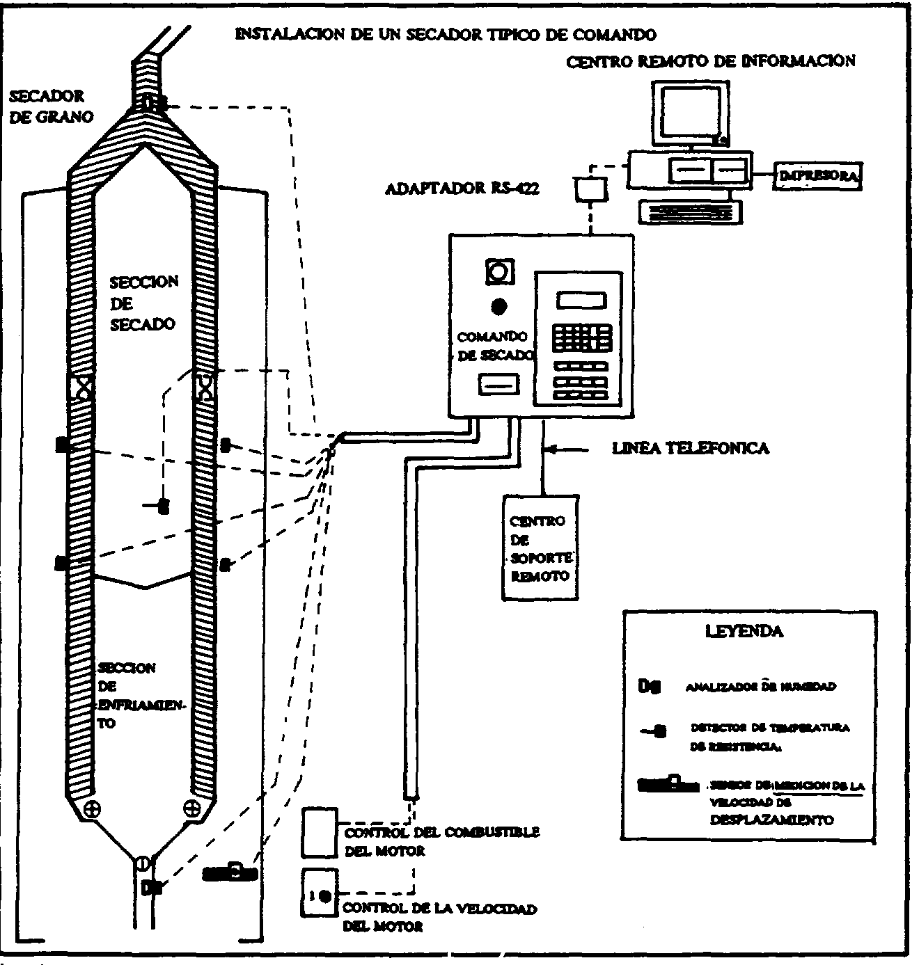 Un sistema desarrollado hace un tiempo en Canadá (Chenoweth, 1987) toma aproximadamente diez mediciones por segundo, que introduce en la consola principal del equipo, la cual envía la información necesaria al motor que acciona la descarga de la secadora. El sistema está conectado a una computadora y enlazado con las oficinas de los fabricantes, de suerte tal que los problemas que puedan presentarse en su funcionamiento pueden ser consultados y a veces resueltos telefónicamente (Figura 52).