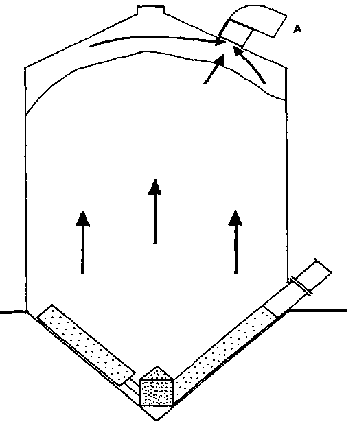 En caso contrario si se aspira el aire, hay que esperar que todo el silo esté lleno, e iniciar la aireación una vez que el grano que se encuentra en las capas superiores ha estado en reposo por lo menos cuatro horas. Si se comenzara antes, el grano de la parte superior quedaría expuesto al fisurado (cuarteado), al sobresecado y al revenido ulterior.
