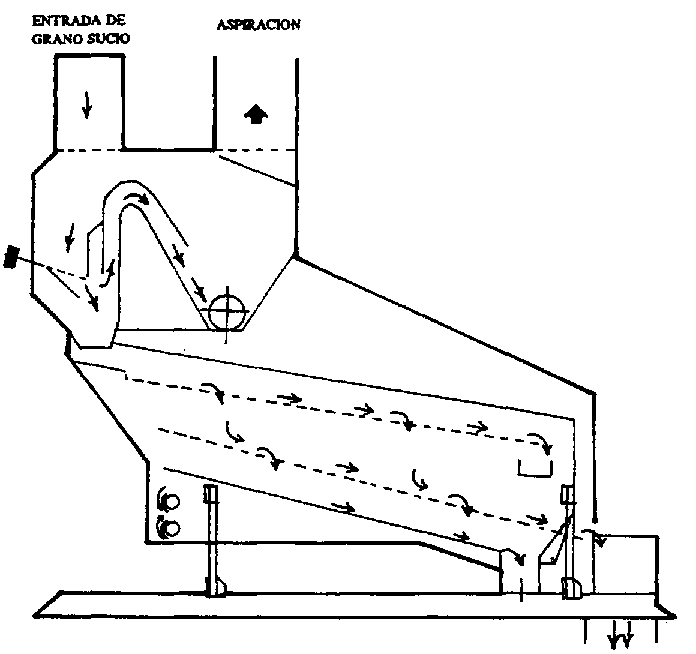 Esta operación puede llevarse a cabo con máquinas especiales, llamadas justamente "prelimpiadoras", de las que existen varios modelos. Las más usadas son del tipo de aspiración o neumáticas, pues se procura que en ese momento se eliminen los materiales livianos (hojas, cáscaras, basura, pedazos de marlos, etc.), ya que estos cuerpos son los que afectan más el proceso de secado. También son recomendadas las limpiadoras con zarandas y aspiración, como la ilustrada en la Figura 85. Las máquinas provistas de cernidores rotativos de grillas (Figura 86) también son utilizadas, pero deben ser objeto de mayor atención pues son propensas a quedar bloqueadas por los residuos.