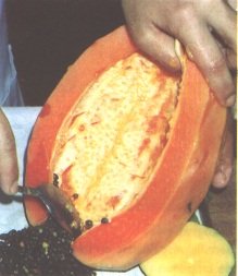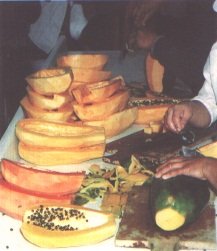 Corte de papaya roja en trozos (G. Paltrinieri)