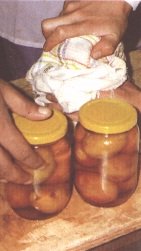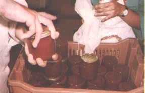 Semillas escaldades en los frascos, esperando el medoi de empaque (G. Paltrinieri)